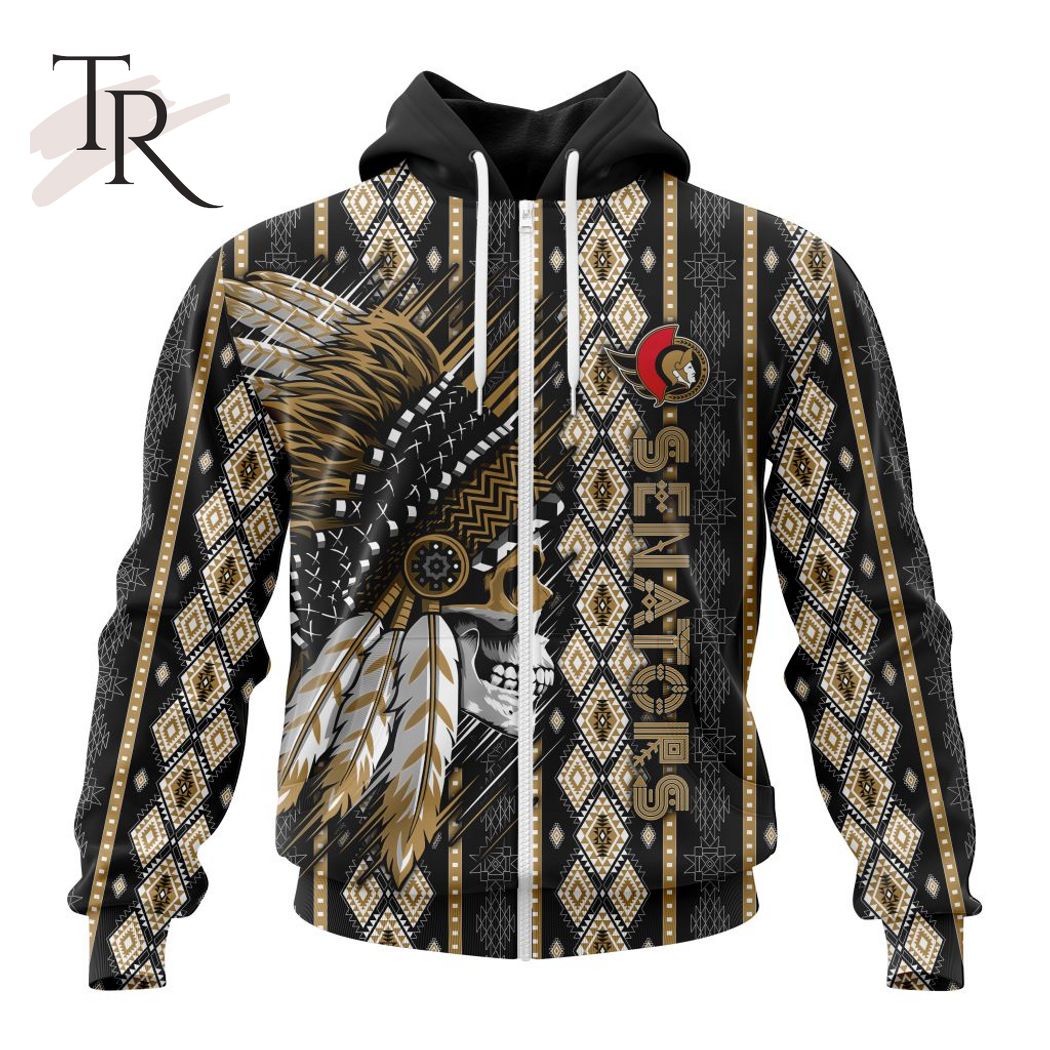 NHL Ottawa Senators Special Skull Native Design Hoodie, Zipper Hoodie, Fleece Hoodie, Long Sleeve Shirt, T-Shirt