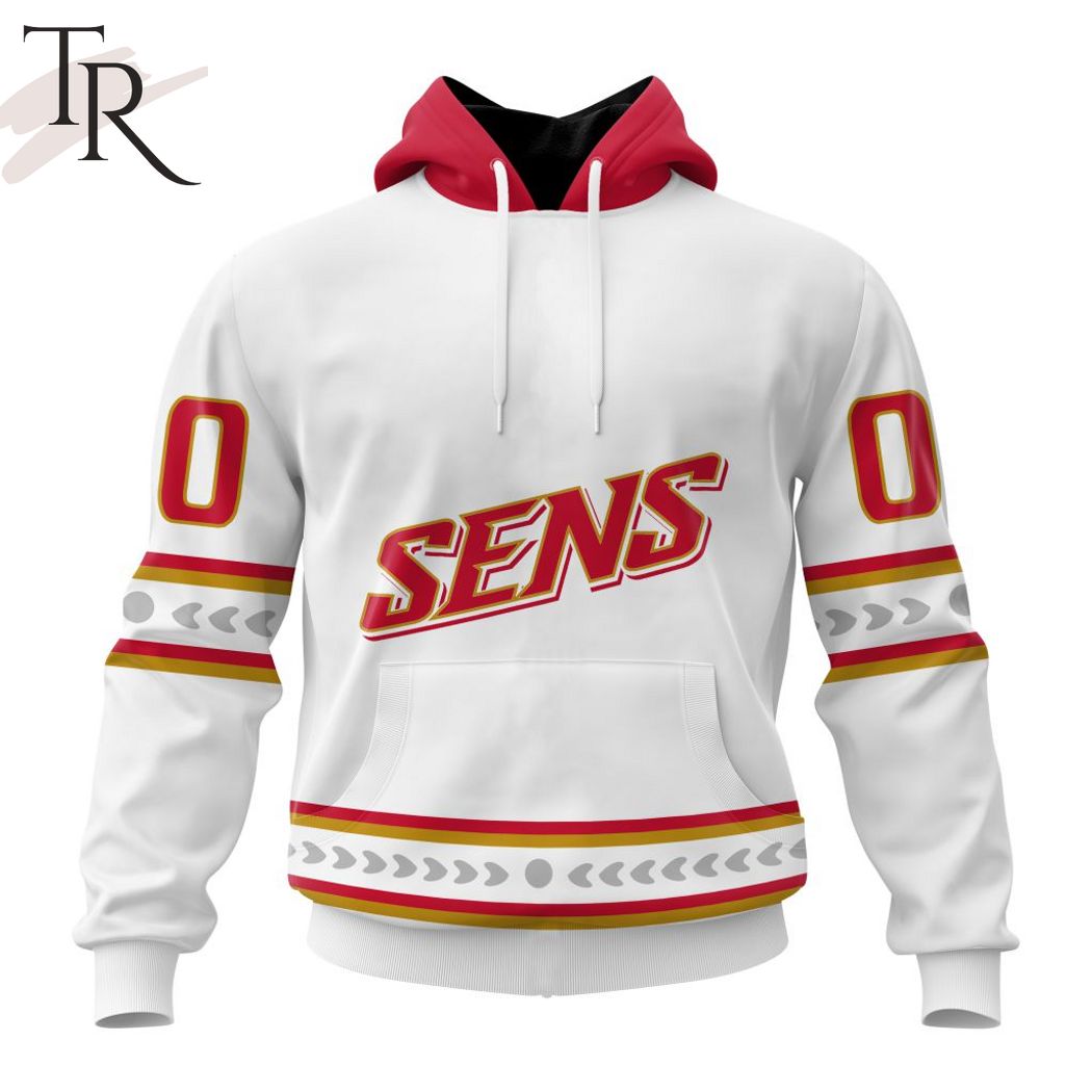 The NHL Ottawa Senators Special Whiteout Design Hoodie is the perfect addition to any hockey fan’s wardrobe. Made with high-quality material, this hoodie is not only comfortable but also durable. Its whiteout design showcases the team’s iconic logo, making it a must-have for any die-hard Senators fan. The hood provides extra warmth and coverage, while the front pouch pocket allows for convenient storage. Additionally, the hoodie features a special whiteout design, perfect for the playoffs or to show off your team spirit. Whether you’re at a game, watching from home, or out and about, this hoodie will keep you warm and proudly displaying your love for the Ottawa Senators. Don’t miss out on the opportunity to own this unique and stylish piece of NHL merchandise. Get your NHL Ottawa Senators Special Whiteout Design Hoodie today!