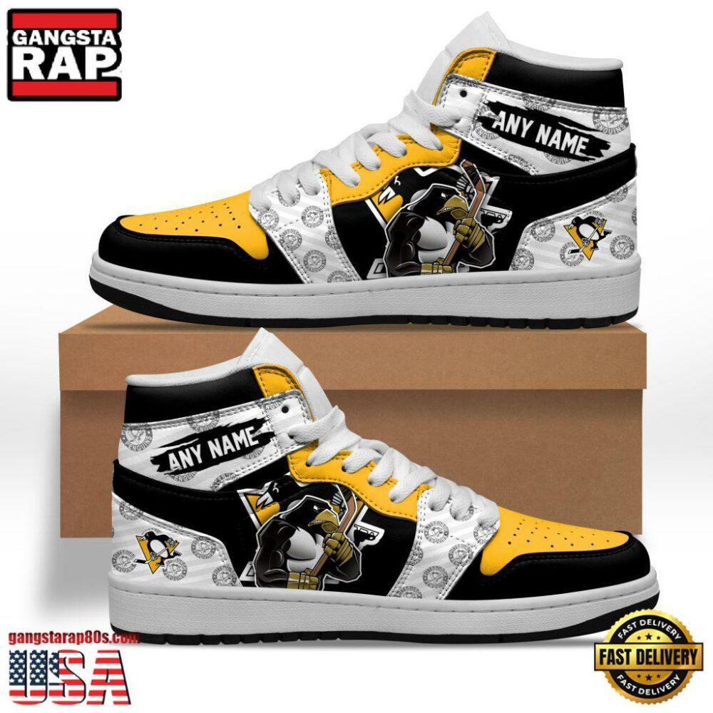 NHL Pittsburgh Penguins Team Mascot New Design Custom Name Air Jordan 1 Shoes