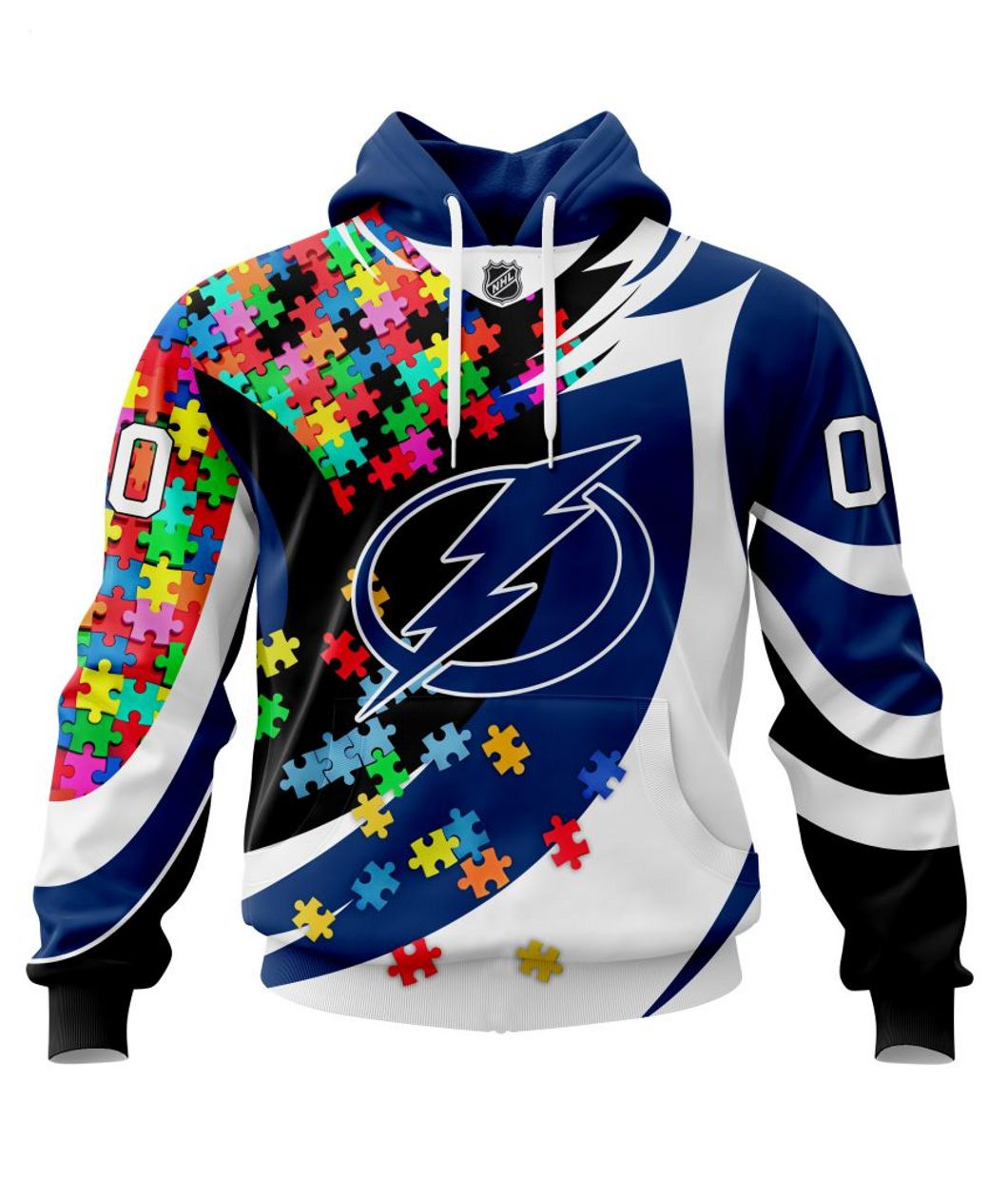 NHL Tampa Bay Lightning Autism Awareness Personalized Name & Number 3D Hoodie