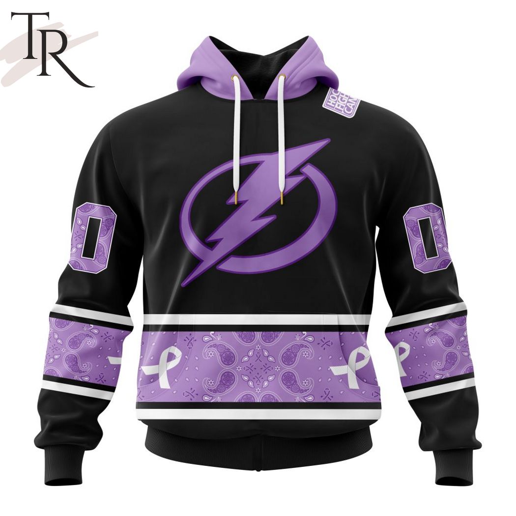 NHL Tampa Bay Lightning Special Black And Lavender Hockey Fight Cancer Design Personalized Hoodie