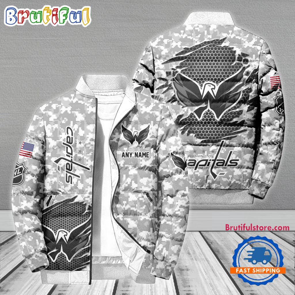 NHL Washington Capitals Special Camo Honor Veterans Puffer Jacket, Hockey Team Design Jacket