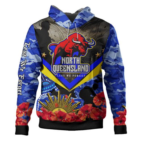 North Queensland Cowboys Custom Hoodie – Aboriginal Inspired Anzac Day North Queensland Cowboys with Poppy Flower Indigenous Hoodie