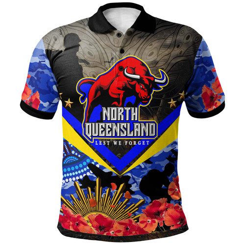 North Queensland Cowboys Custom Polo Shirt – Aboriginal Inspired Anzac Day North Queensland Cowboys with Poppy Flower Indigenous Polo Shirt