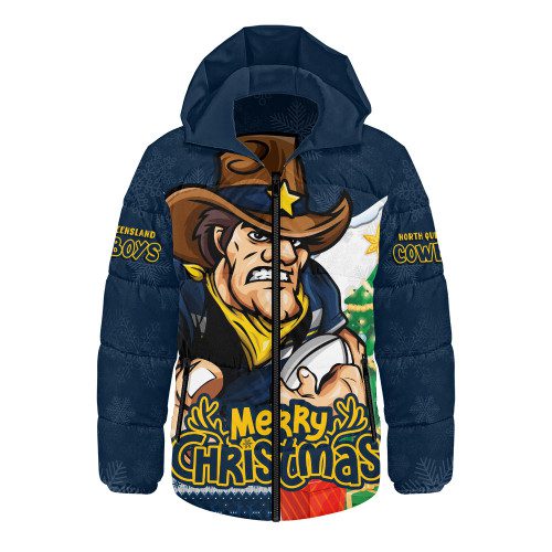 North Queensland Cowboys Hooded Padded Jacket Santa Scoring Touchdown On Christmas Game Day