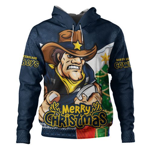 North Queensland Cowboys Hoodie Santa Scoring Touchdown On Christmas Game Day