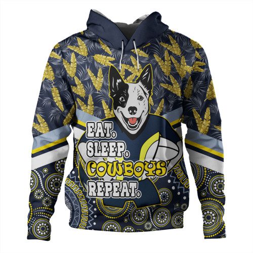 North Queensland Cowboys Hoodie – Tropical Patterns And Dot Painting Eat Sleep Rugby Repeat