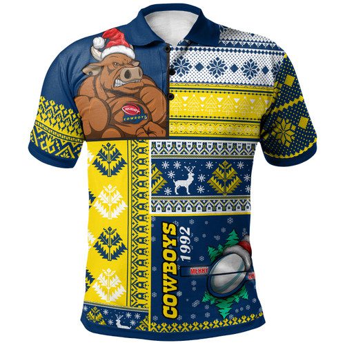 North Queensland Cowboys Polo Shirt – Custom Christmas Snowflakes North Queensland Cowboys Mascot Polo Shirt