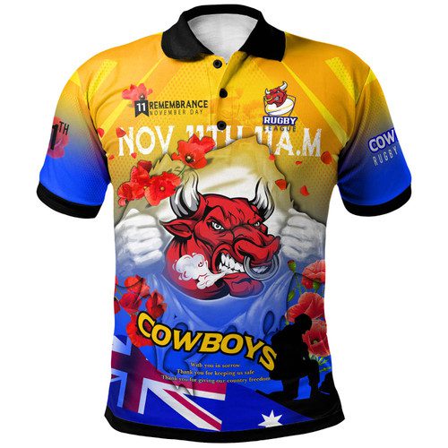 North Queensland Cowboys Polo Shirt – Custom North Queensland Cowboys Remembrance Day Lest We Forget Poppies Polo Shirt