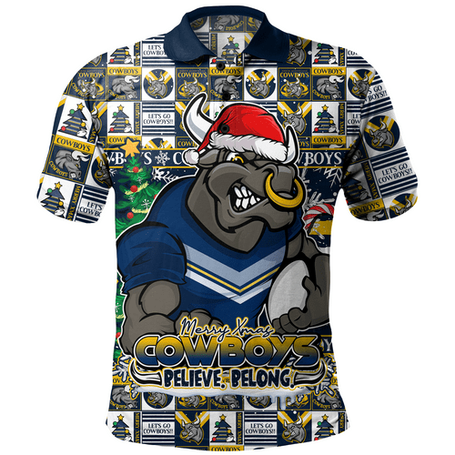 North Queensland Cowboys Polo Shirt Merry Ugly Christmas Comic Style