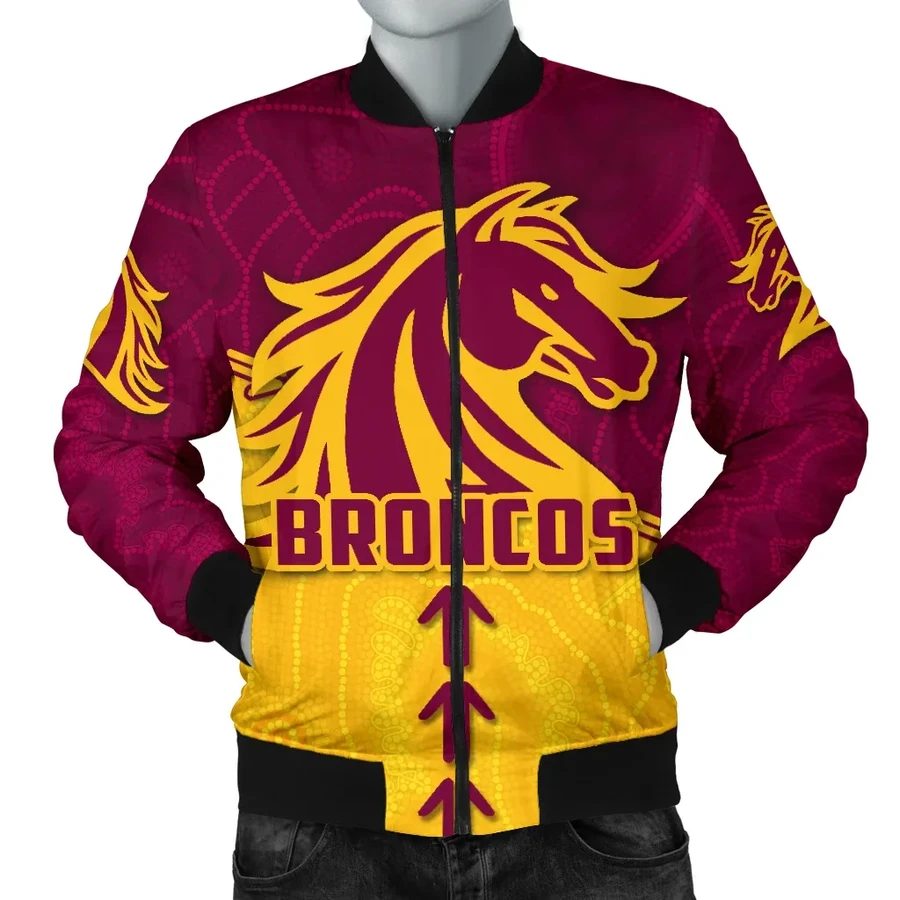 NRL Brisbane Broncos Aboriginal Bomber Jacket Product Features This sweet bomber jacket features crisp Brisbane Broncos graphics that put your fandom proudly on display, so no one will be able to question your allegiance. Always on-trend: Matches seamlessly with anything underneath ? definitely a wardrobe staple. Comfy & warm: With ample lining inside, this jacket...