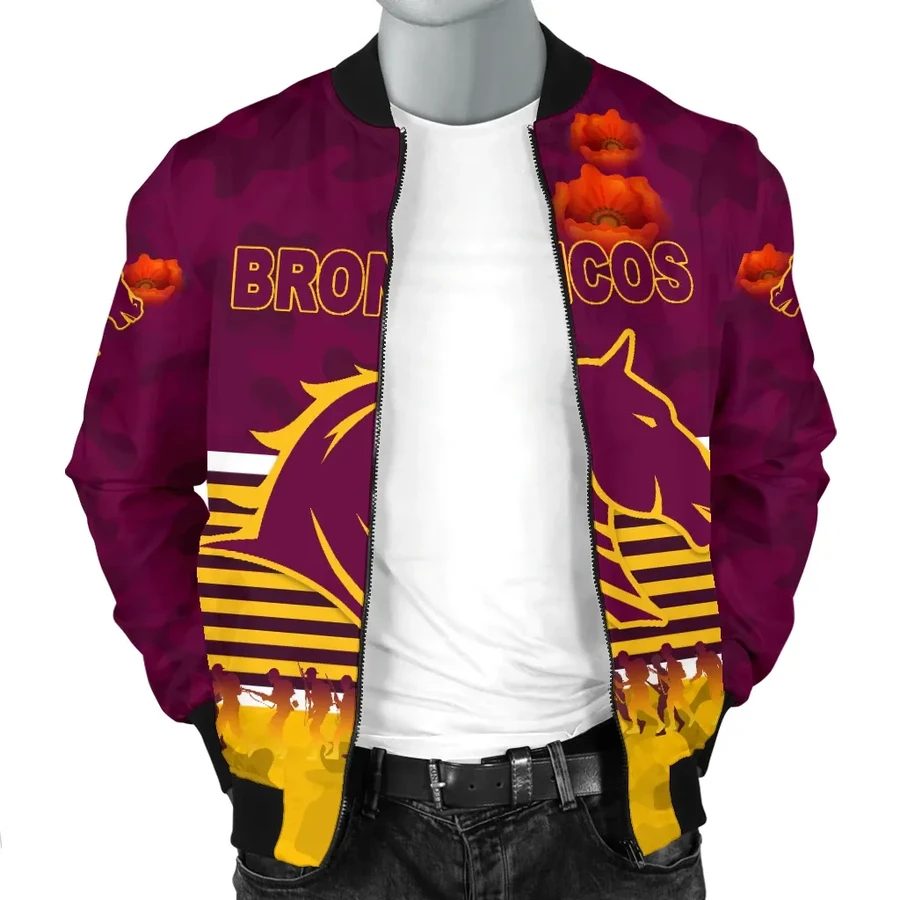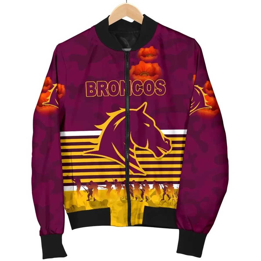 NRL Brisbane Broncos ANZAC Day Simple Style Bomber Jacket Product Features This sweet bomber jacket features crisp Brisbane Broncos graphics that put your fandom proudly on display, so no one will be able to question your allegiance. Always on-trend: Matches seamlessly with anything underneath ? definitely a wardrobe staple. Comfy & warm: With ample lining...