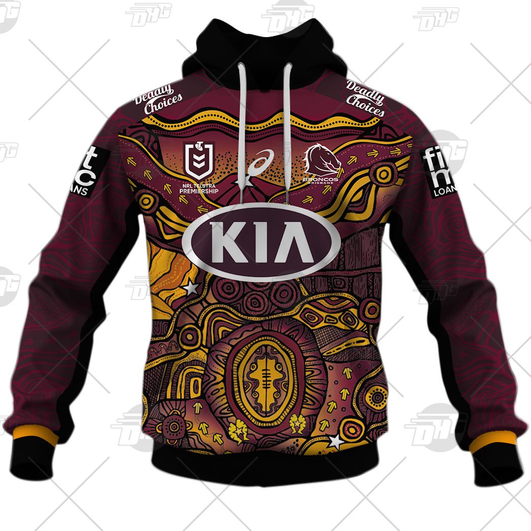NRL Brisbane Broncos Custom Name Number On Field Indigenous Jersey 2021 Pullover Hoodie