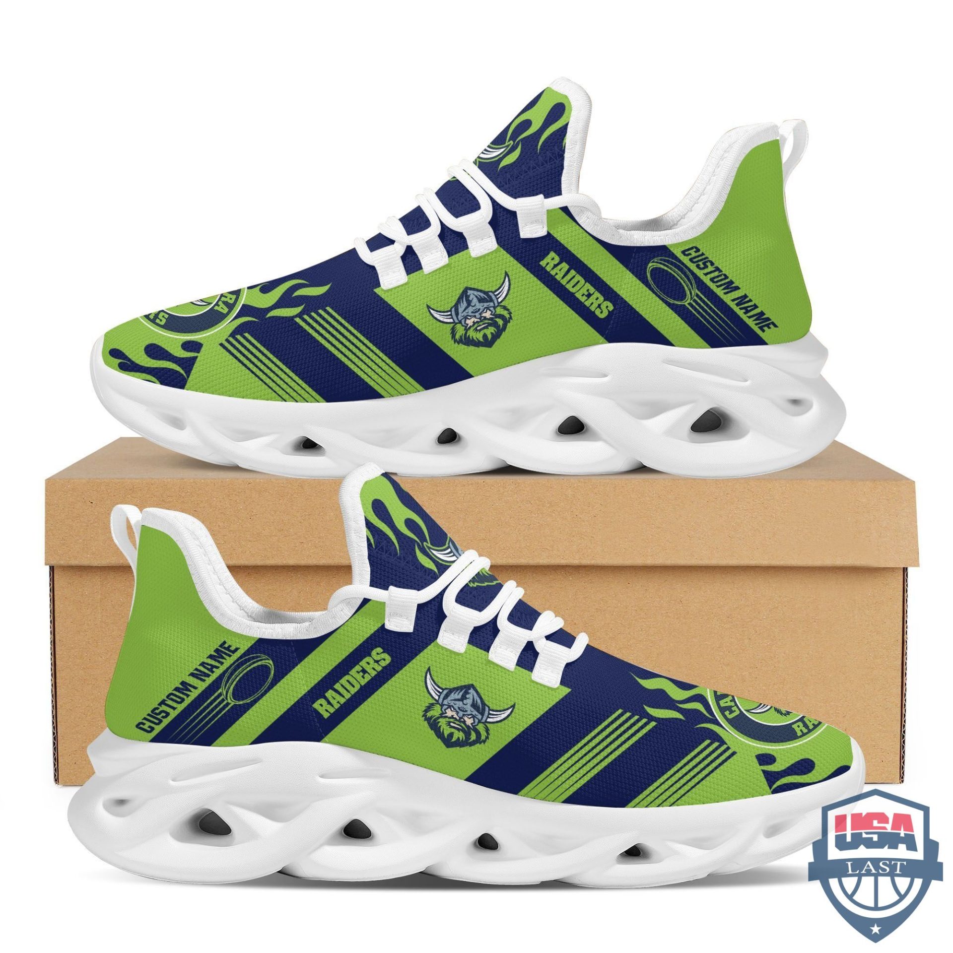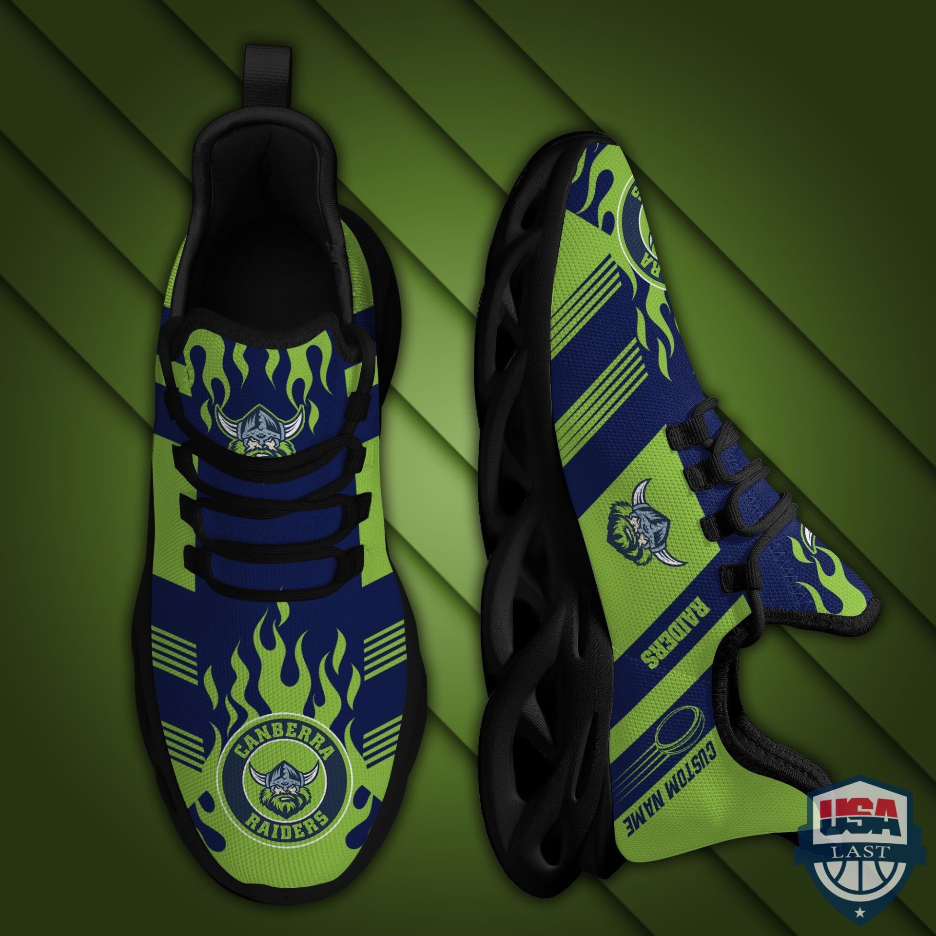 NRL Canberra Raiders Custom Name Green Blue Max Soul Shoes