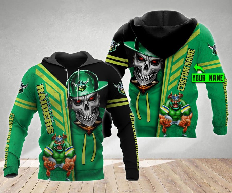 NRL Canberra Raiders Custom Name Number Skull Mascot Pullover Hoodie