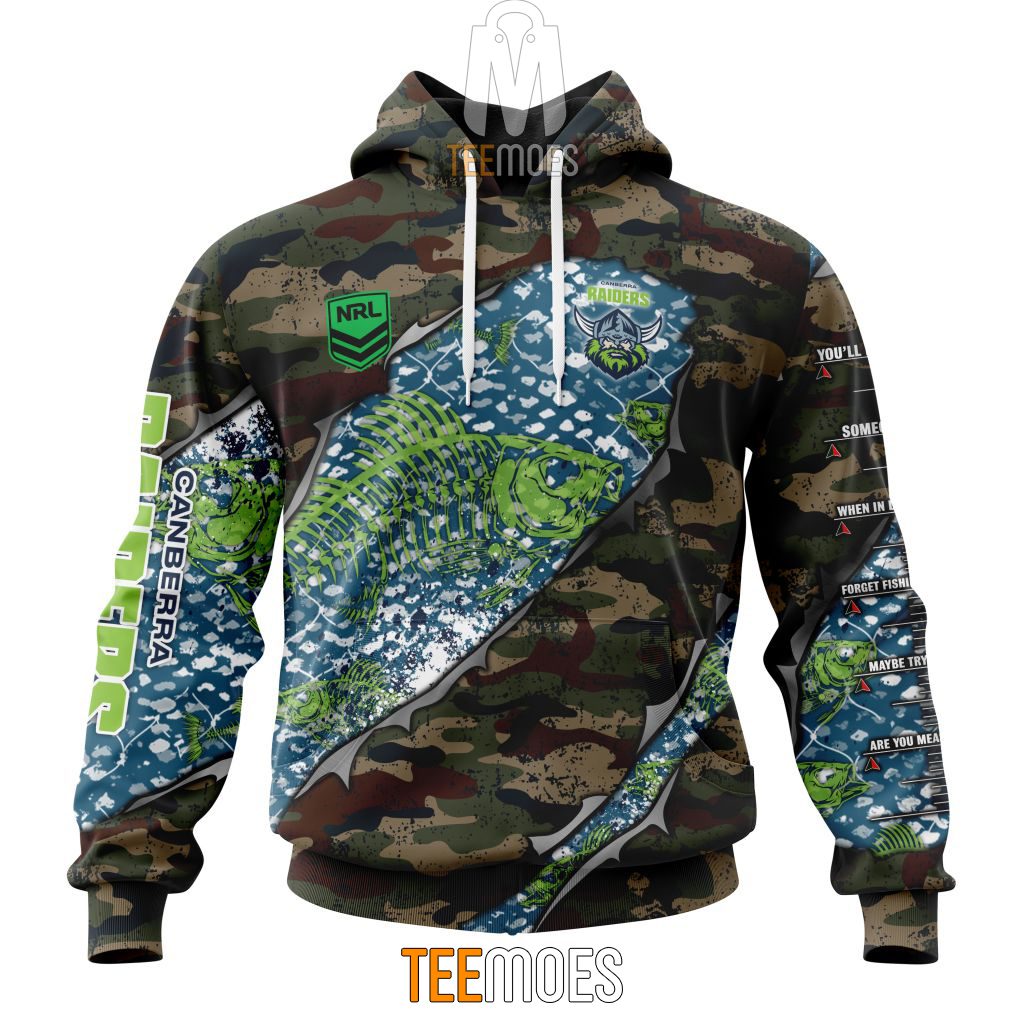 NRL Canberra Raiders Custom Name Number Special Camo Fishing Pullover Hoodie