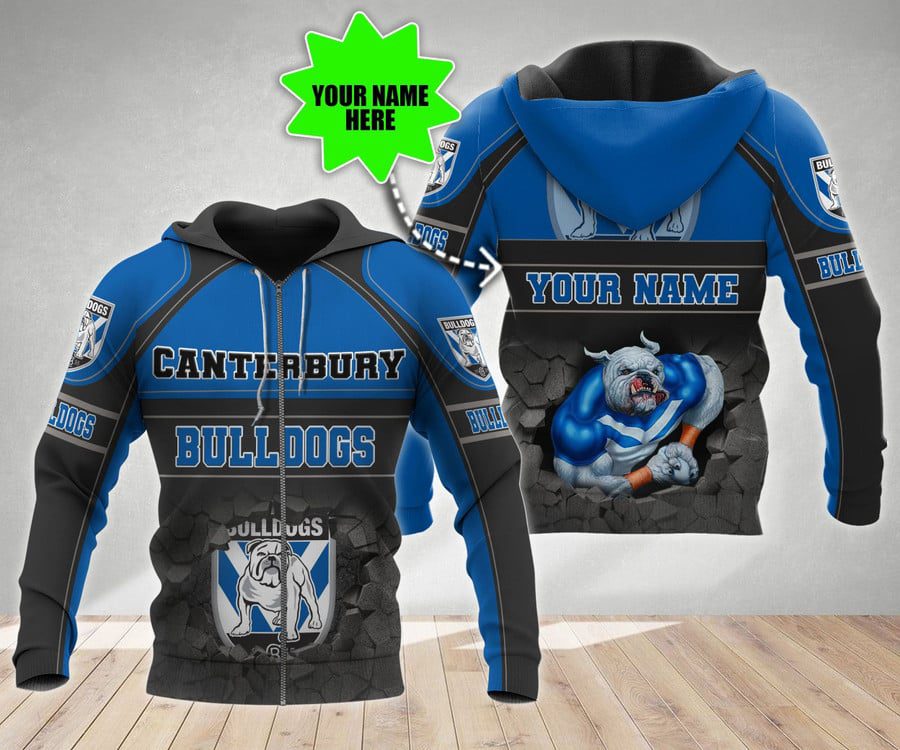 NRL Canterbury-Bankstown Bulldogs Custom Name Number Mascot Pullover Hoodie V12 Product Features Along with its Canterbury-Bankstown Bulldogs graphics, this cozy pullover hoodie features super-soft midweight material. Material: 95% polyester + 5% spandex. The fabric is durable and resistant to wrinkles, shrinking and mildew. Hood with drawstrings. Long sleeve. Front pouch pocket. Midweight hoodie suitable for...