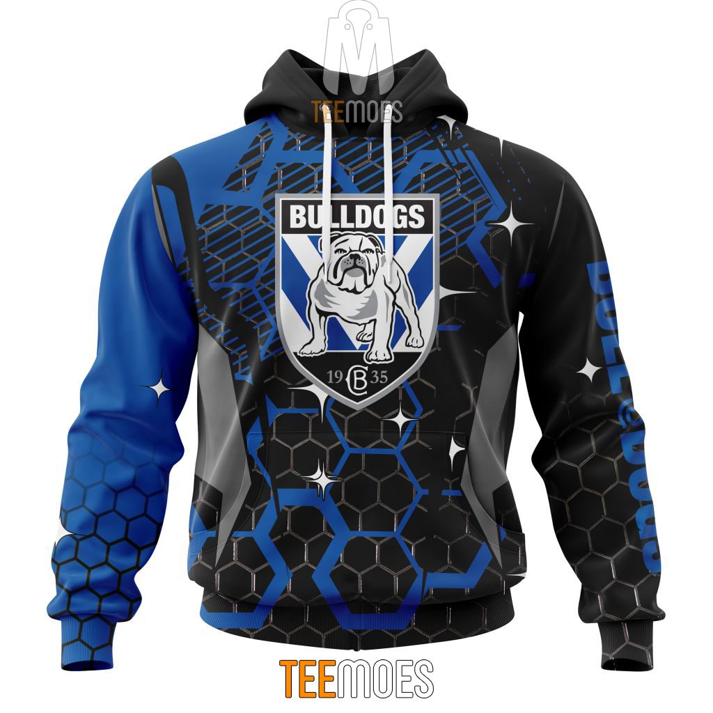 NRL Canterbury-Bankstown Bulldogs Custom Name Number MotoCross Style Pullover Hoodie Product Features Along with its Canterbury-Bankstown Bulldogs graphics, this cozy pullover hoodie features super-soft midweight material. Material: 95% polyester + 5% spandex. The fabric is durable and resistant to wrinkles, shrinking and mildew. Hood with drawstrings. Long sleeve. Front pouch pocket. Midweight hoodie suitable for...
