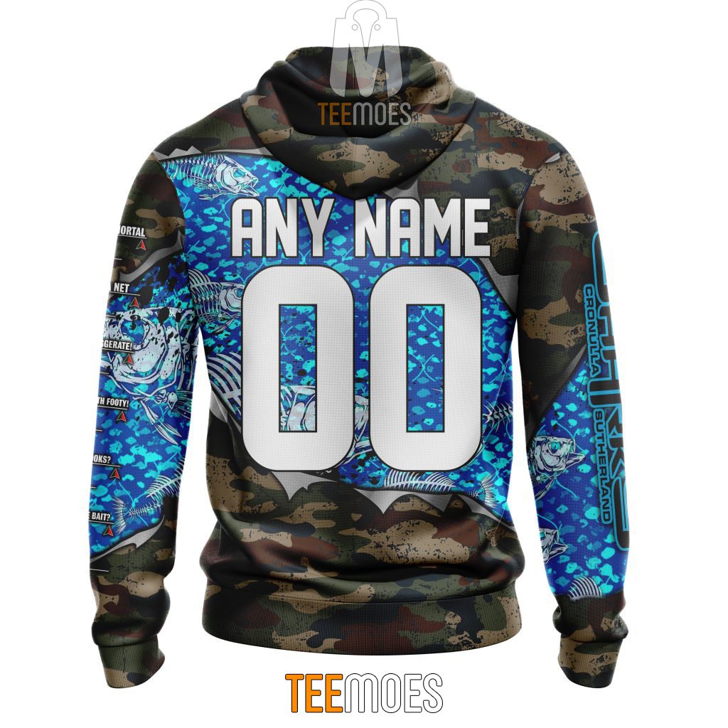 NRL Cronulla-Sutherland Sharks Custom Name Number Special Camo Fishing Pullover Hoodie