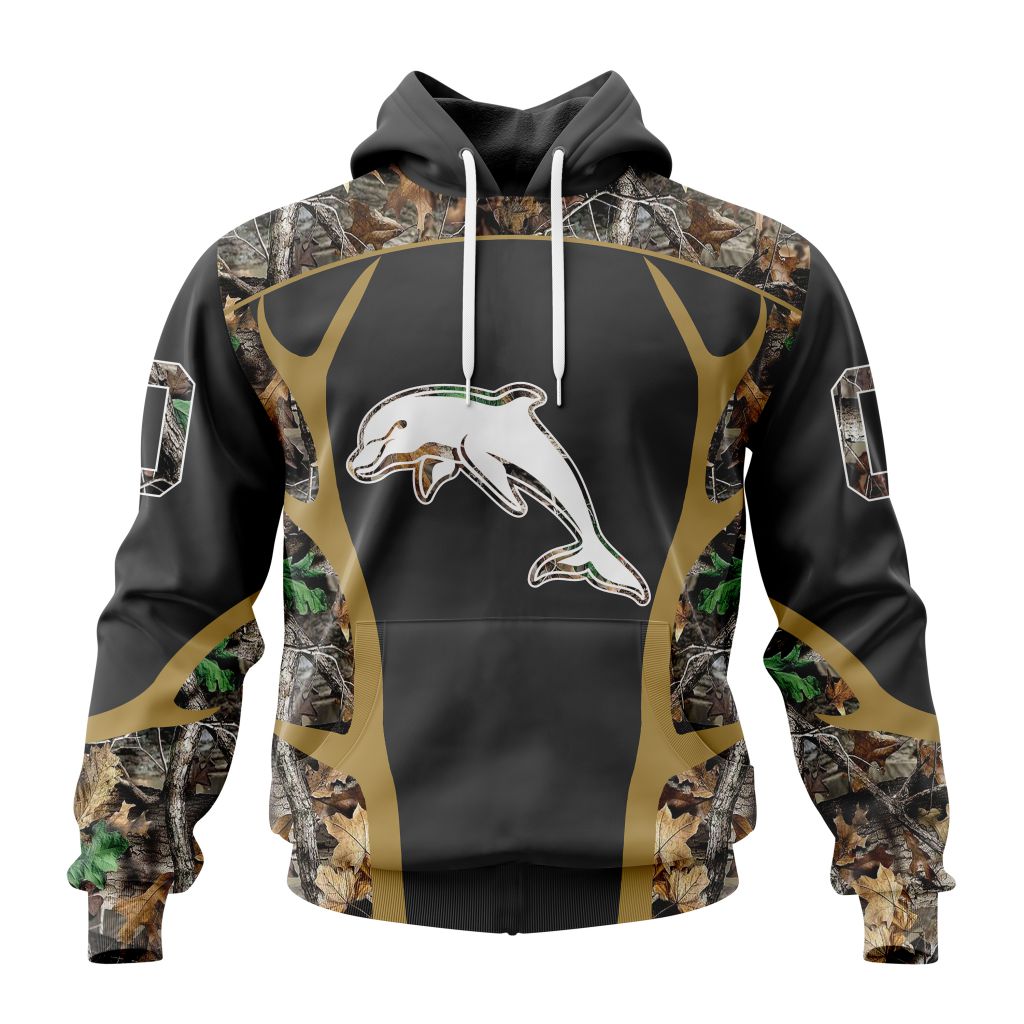 NRL Dolphins Custom Name Number Special Camo Hunting Pullover Hoodie