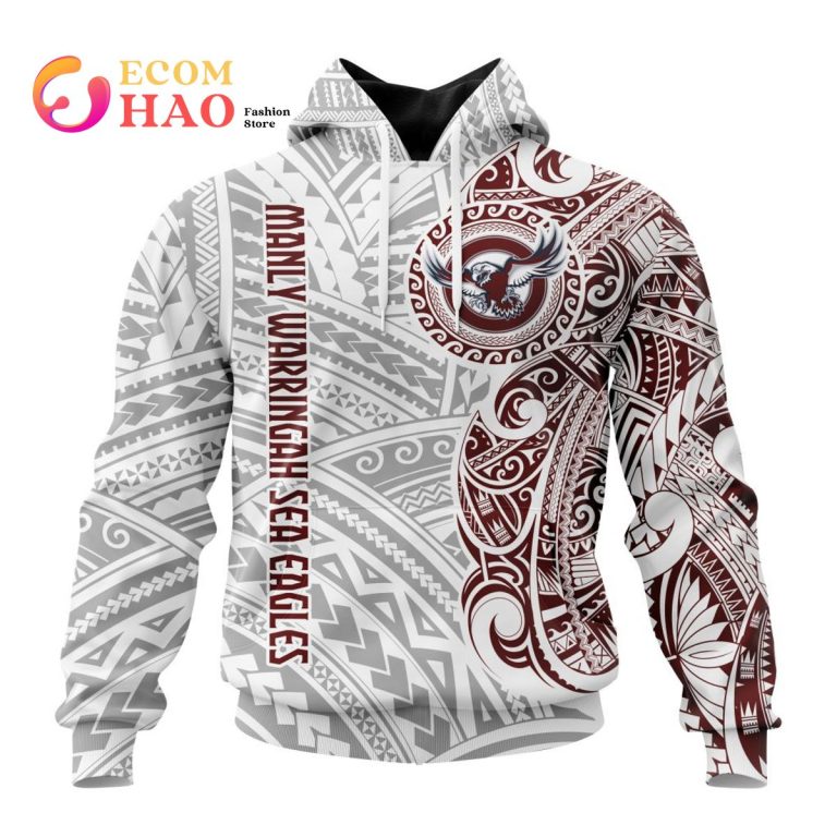 NRL Manly Warringah Sea Eagles Custom Name Number Polynesian Pullover Hoodie Product Features Along with its Manly Warringah Sea Eagles graphics, this cozy pullover hoodie features super-soft midweight material. Material: 95% polyester + 5% spandex. The fabric is durable and resistant to wrinkles, shrinking and mildew. Hood with drawstrings. Long sleeve. Front pouch pocket. Midweight...