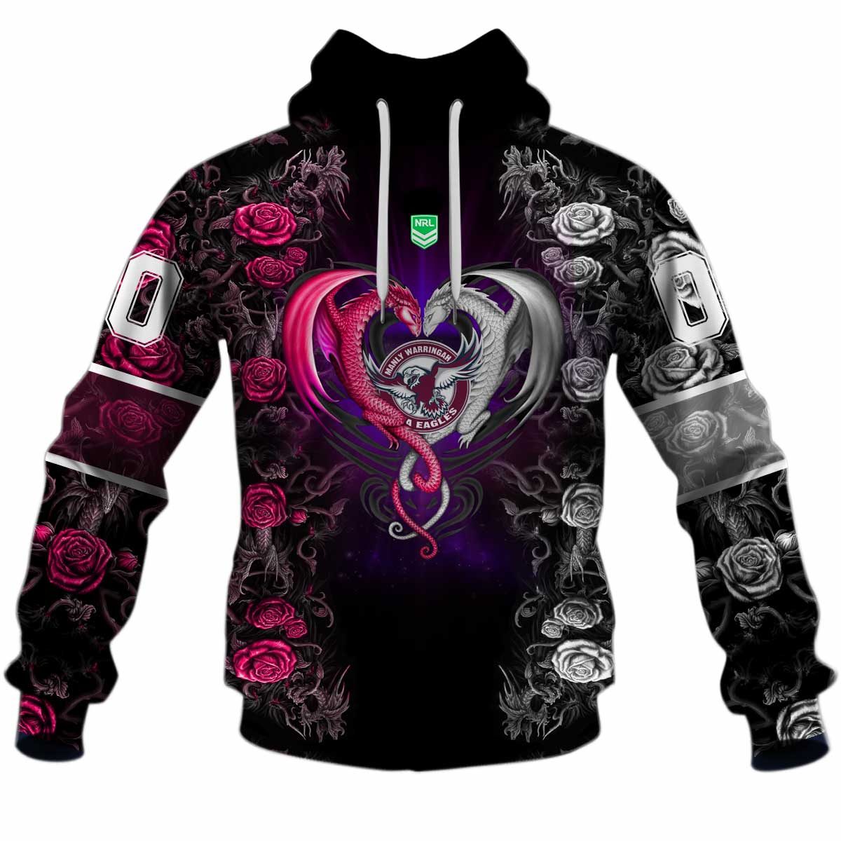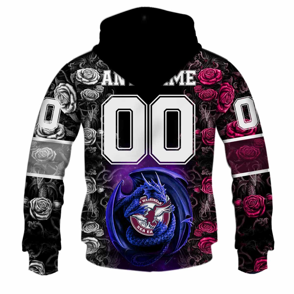 NRL Manly Warringah Sea Eagles Custom Name Number Rose Dragon Pullover Hoodie
