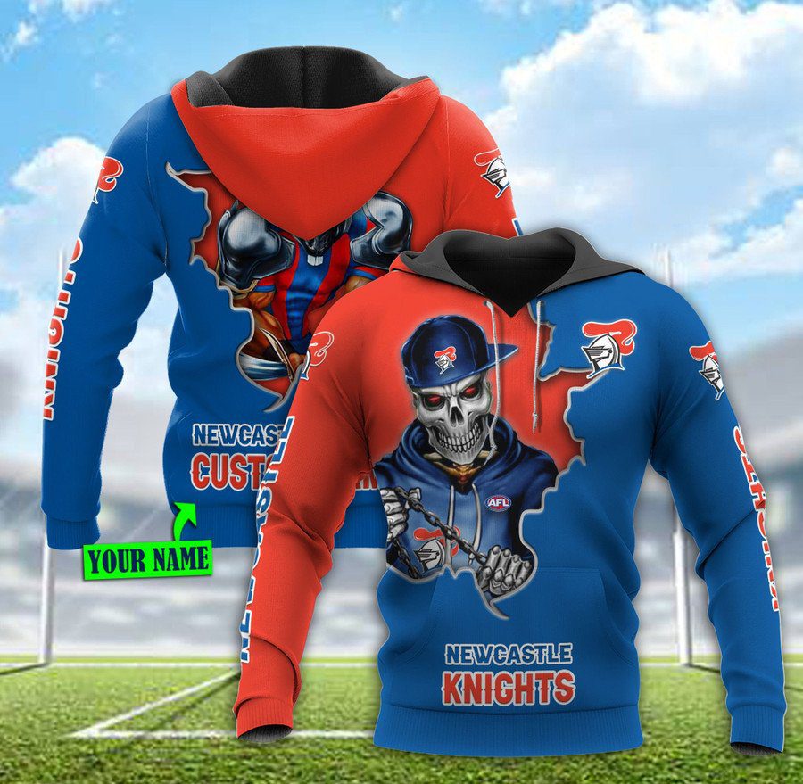 NRL Newcastle Knights Custom Name Mascot Skull Pullover Hoodie