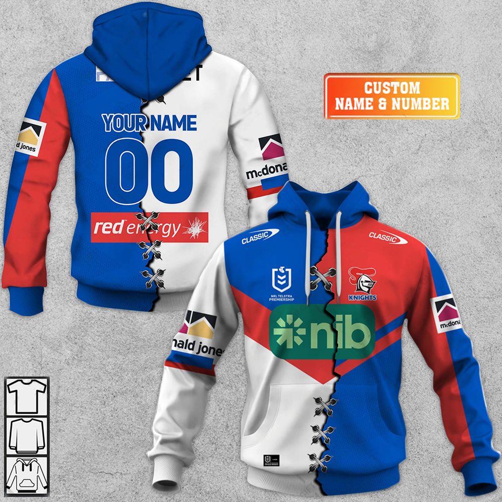NRL Newcastle Knights Custom Name Number 2023 Mix Jersey V2 Pullover Hoodie Product Features