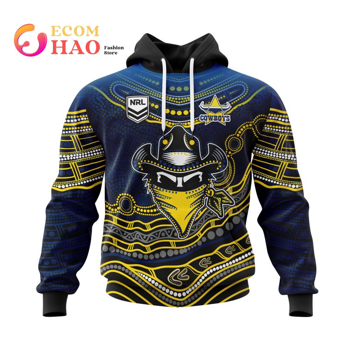NRL North Queensland Cowboys Custom Name Number Indigenous Mascot Pullover Hoodie