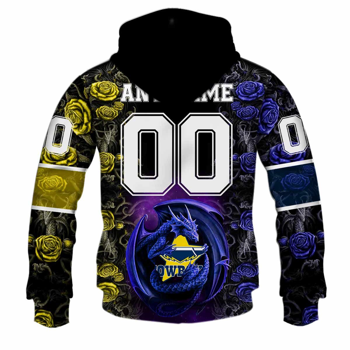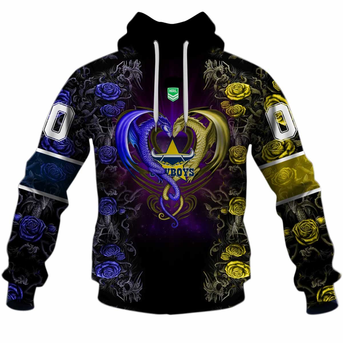 NRL North Queensland Cowboys Custom Name Number Rose Dragon Pullover Hoodie