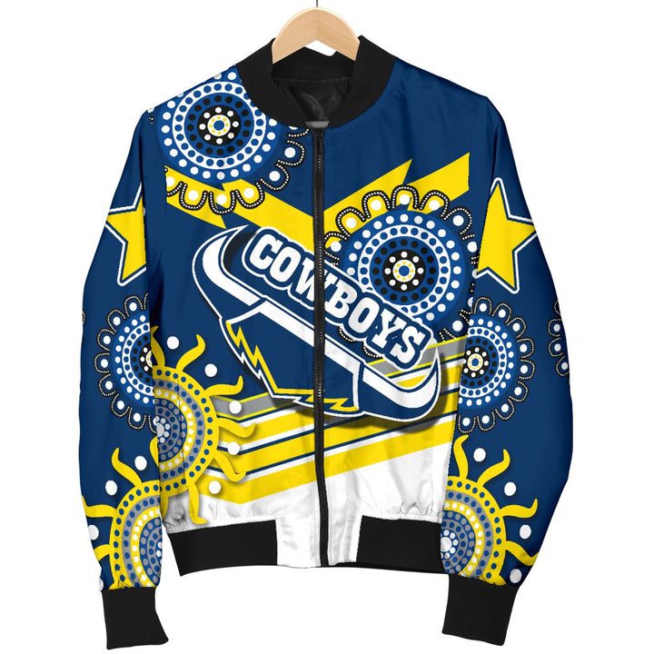 NRL North Queensland Cowboys Proud Indigenous Bomber Jacket Product Features This sweet bomber jacket features crisp North Queensland Cowboys graphics that put your fandom proudly on display, so no one will be able to question your allegiance. Always on-trend: Matches seamlessly with anything underneath ? definitely a wardrobe staple. Comfy & warm: With ample lining...