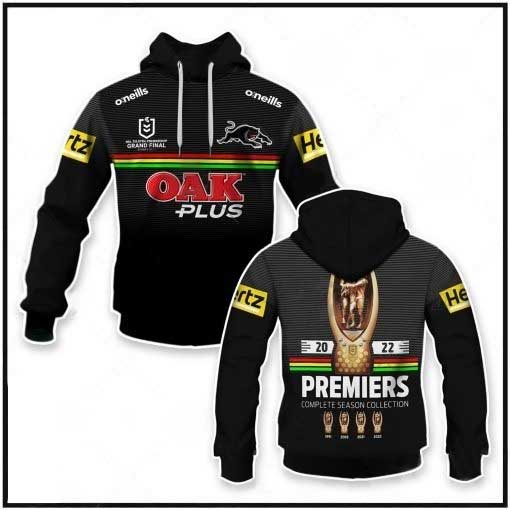 NRL Penrith Panthers Black Premiers 2022 – 2023 Complete Season Collection Pullover Hoodie