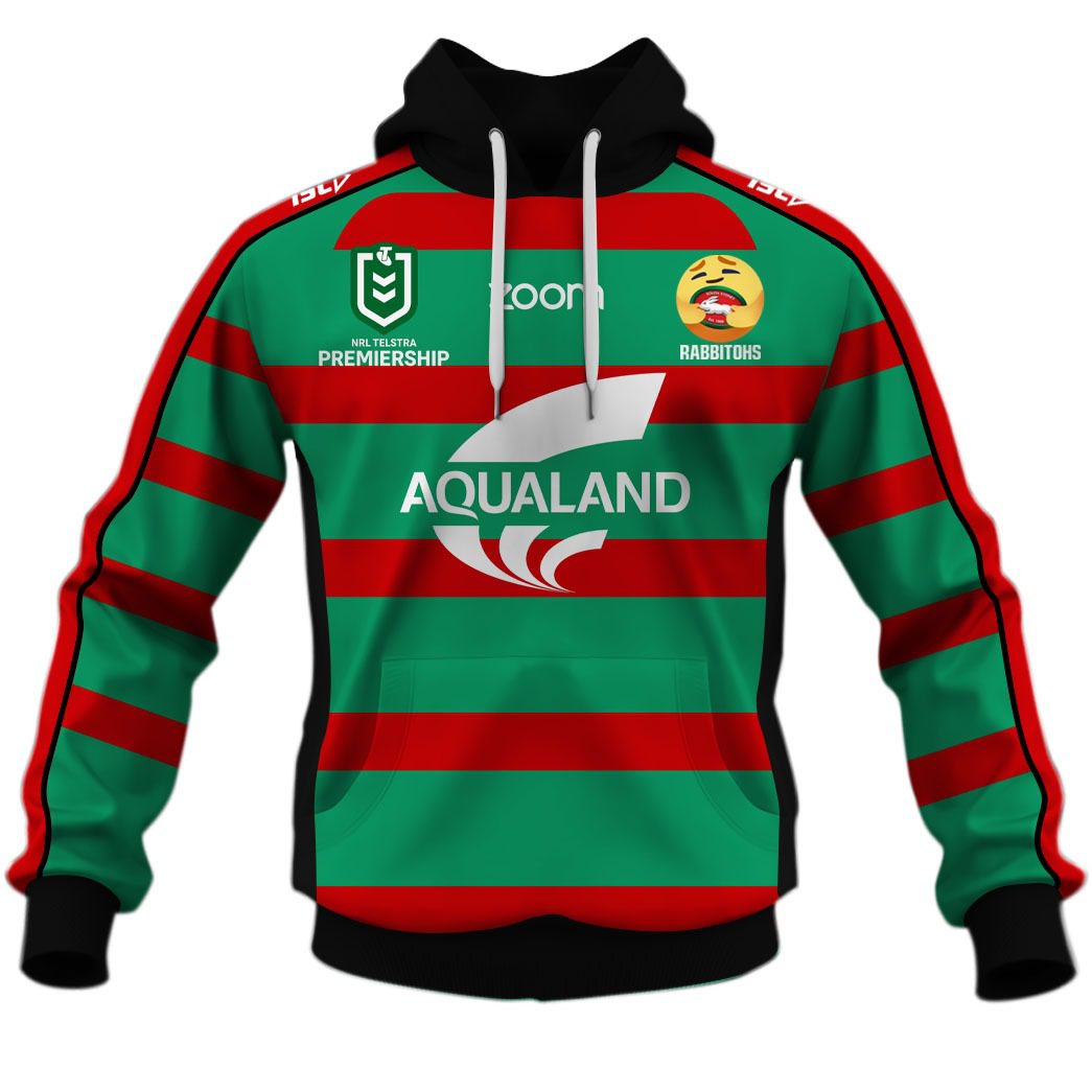 NRL South Sydney Rabbitohs Custom Name Number 2020 Home Jersey Care Emoji Pullover Hoodie