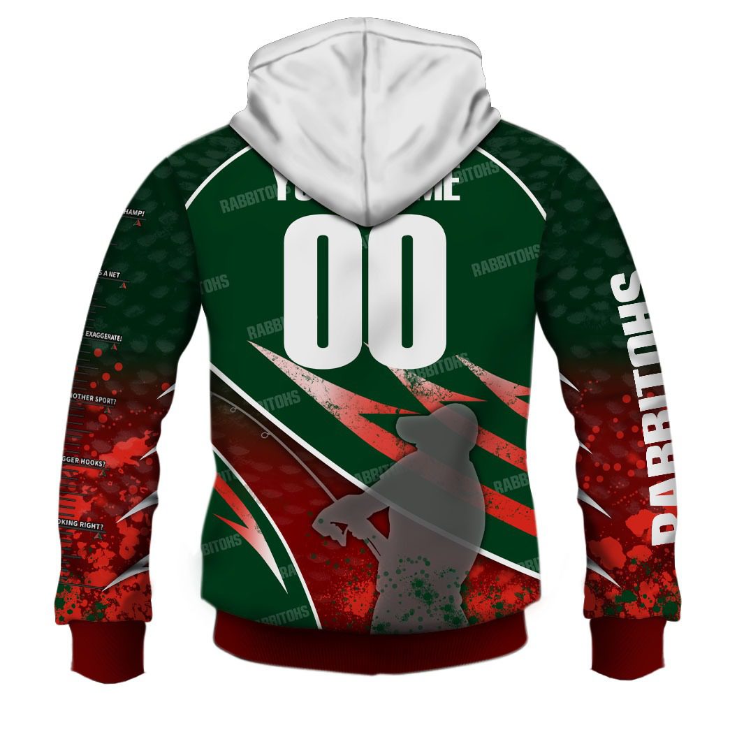 NRL South Sydney Rabbitohs Custom Name Number Fishing T59 Pullover Hoodie Product Features