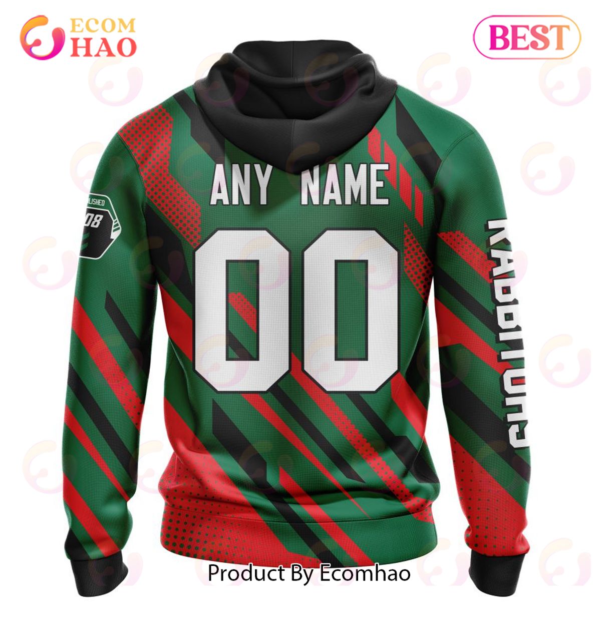 NRL South Sydney Rabbitohs Custom Name Number MotoCross Pullover Hoodie Product Features Along with its South Sydney Rabbitohs graphics, this cozy pullover hoodie features super-soft midweight material. Material: 95% polyester + 5% spandex. The fabric is durable and resistant to wrinkles, shrinking and mildew. Hood with drawstrings. Long sleeve. Front pouch pocket. Midweight hoodie suitable...