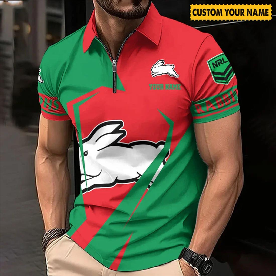 NRL South Sydney Rabbitohs Custom Name Special Edition Zipper Polo Shirt