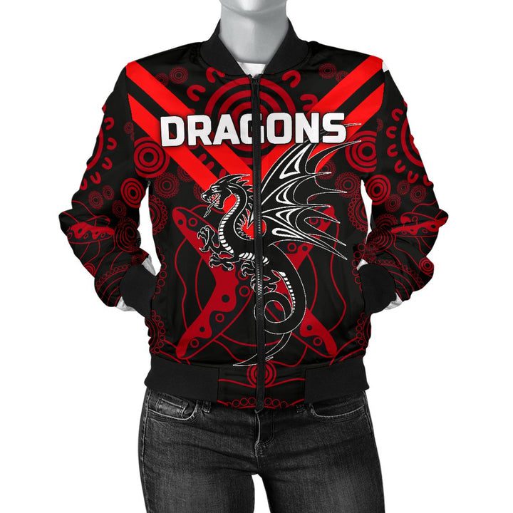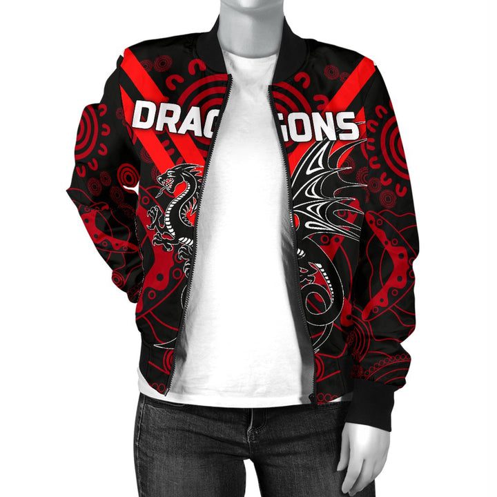 NRL St. George Illawarra Dragons Aboriginal Bomber Jacket V2 Product Features This sweet bomber jacket features crisp St. George Illawarra Dragons graphics that put your fandom proudly on display, so no one will be able to question your allegiance. Always on-trend: Matches seamlessly with anything underneath ? definitely a wardrobe staple. Comfy & warm: With...