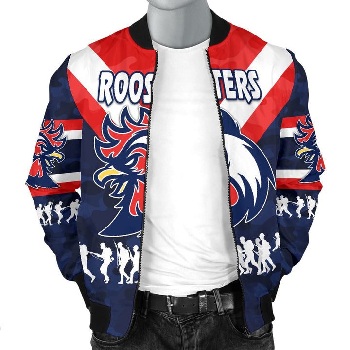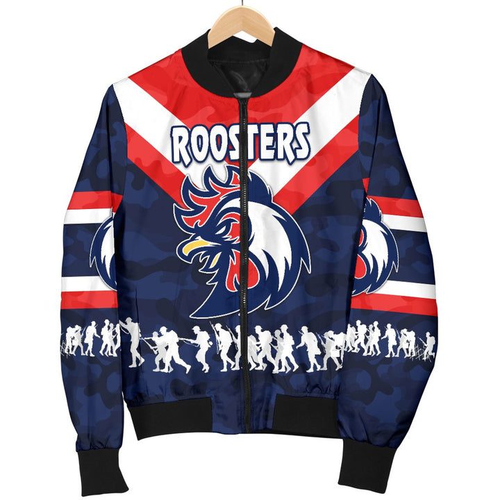 NRL Sydney Roosters ANZAC Style Bomber Jacket Product Features This sweet bomber jacket features crisp Sydney Roosters graphics that put your fandom proudly on display, so no one will be able to question your allegiance. Always on-trend: Matches seamlessly with anything underneath ? definitely a wardrobe staple. Comfy & warm: With ample lining inside, this...