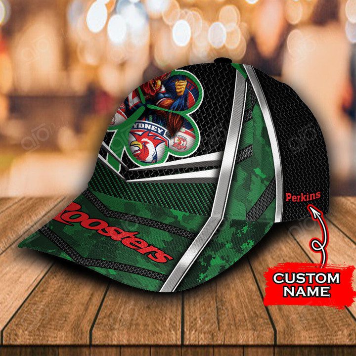 NRL Sydney Roosters Custom Name Mascot Green Classic Cap