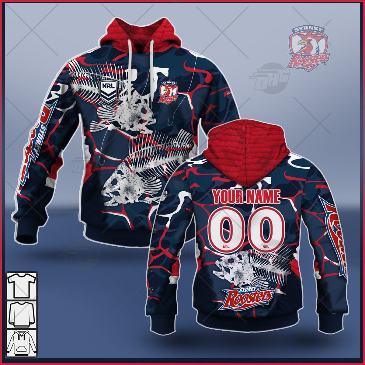 NRL Sydney Roosters Custom Name Number 2021 Fishing Pullover Hoodie