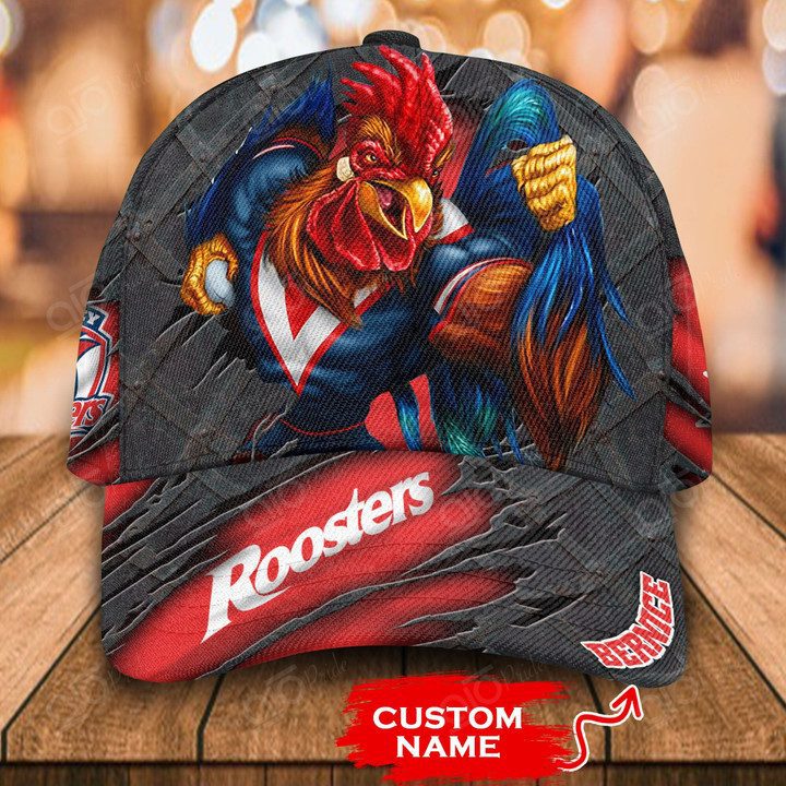 NRL Sydney Roosters Custom Name Rocky Mascot Scratch Classic Cap