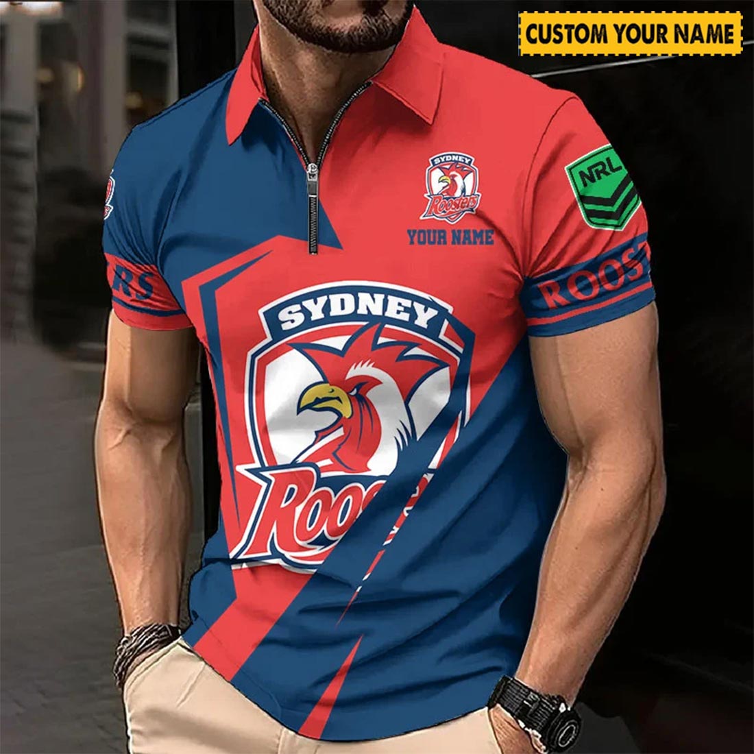 NRL Sydney Roosters Custom Name Special Edition Zipper Polo Shirt