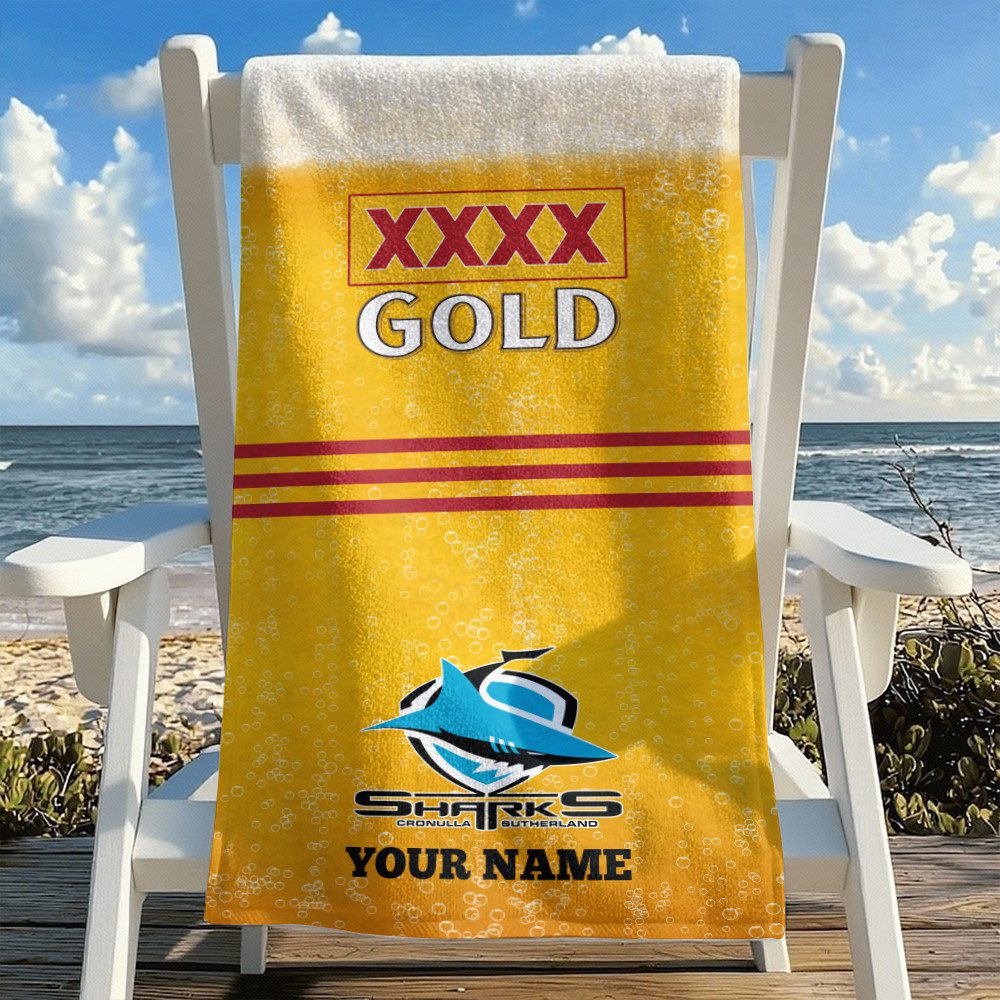 NRL Team Mix XXXX Gold Beer Beach Towel Custom Any Name Gift 13