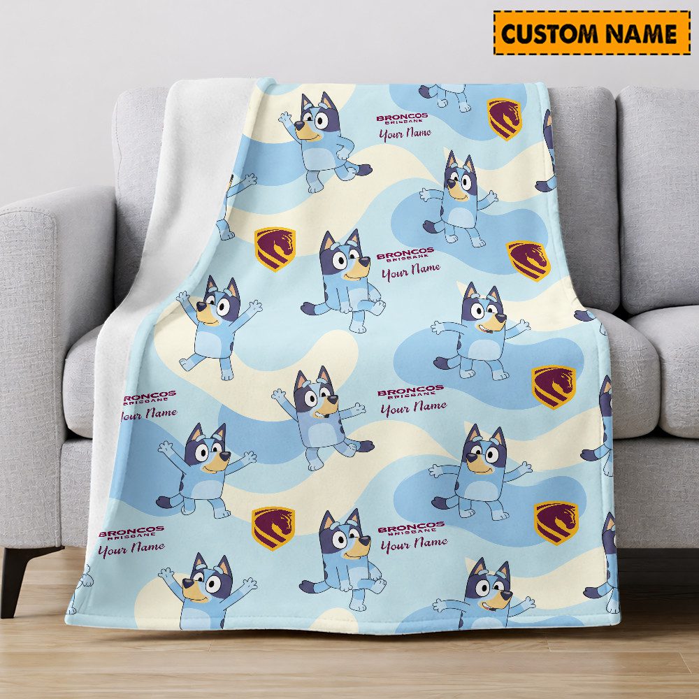 NRL x Bluey Custom Name Premium Fleece Blanket Gifts For Fans Limite
