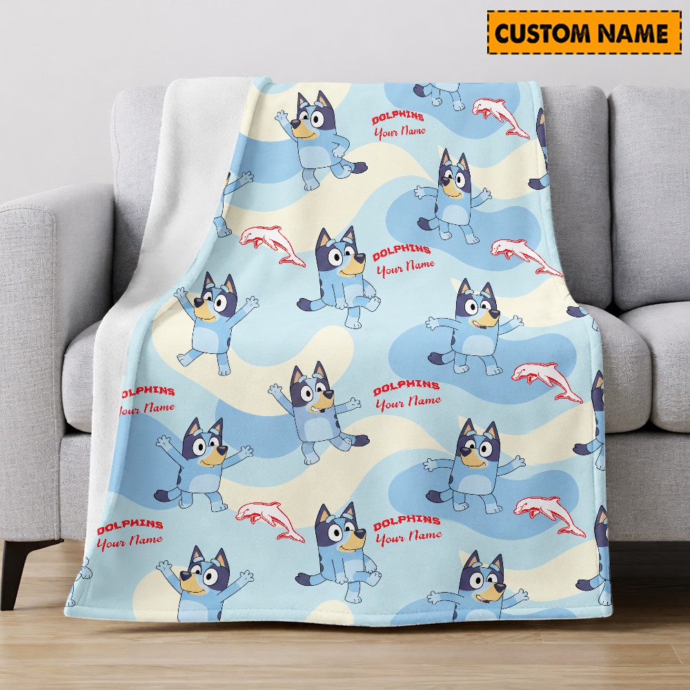 NRL x Bluey Custom Name Premium Fleece Blanket Gifts For Fans Limite