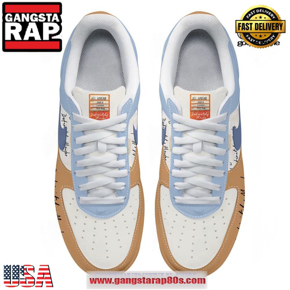 Introducing the Oasis Band Definitely Maybe Limited Edition Air Force 1 Running Sneakers?a celebration of timeless music and iconic footwear styles. Inspired by the legendary 1994 debut album, ?Definitely Maybe,? these limited edition sneakers pay homage to an era-defining sound and an enduring sneaker silhouette. Perfect for both music aficionados and sneaker enthusiasts, these unique shoes blend rock ?n? roll nostalgia with modern fashion trends.