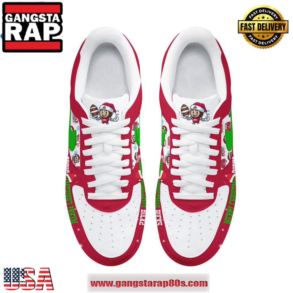 Whether you’re attending a game or enjoying the winter festivities, the Ohio State Merry Christmas Bucks Air Force 1 Running Sneakers are designed to provide both comfort and style. Embrace the holiday cheer and show your team pride with this special edition footwear that?s as much about performance as it is about style.