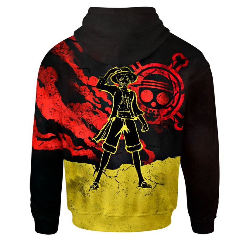ONE PIECE Monkey D Luffy Pullover Hoodie V2 Product Features Along with its Monkey D Luffy graphics, this cozy pullover hoodie features super-soft midweight material. Material: 95% polyester + 5% spandex. The fabric is durable and resistant to wrinkles, shrinking and mildew. Hood with drawstrings. Long sleeve. Front pouch pocket. Midweight hoodie suitable for moderate...