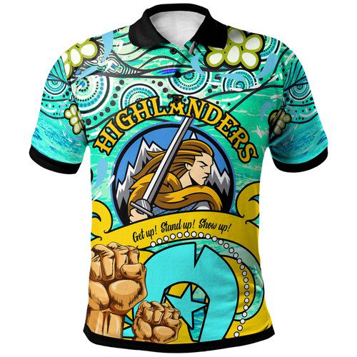 Otago Highlanders Rugby Polo Shirt – Custom Naidoc Week Otago Highlanders Warrior with Aboriginal Inspired “Get up! Stand up! Show up!” Polo Shirt
