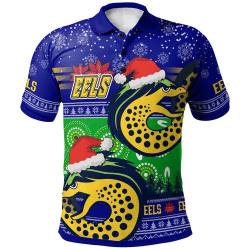 Parramatta Eels Christmas Polo Shirt – Custom Parramatta Eels Ugly Christmas And Aboriginal Inspired Patterns Polo Shirt